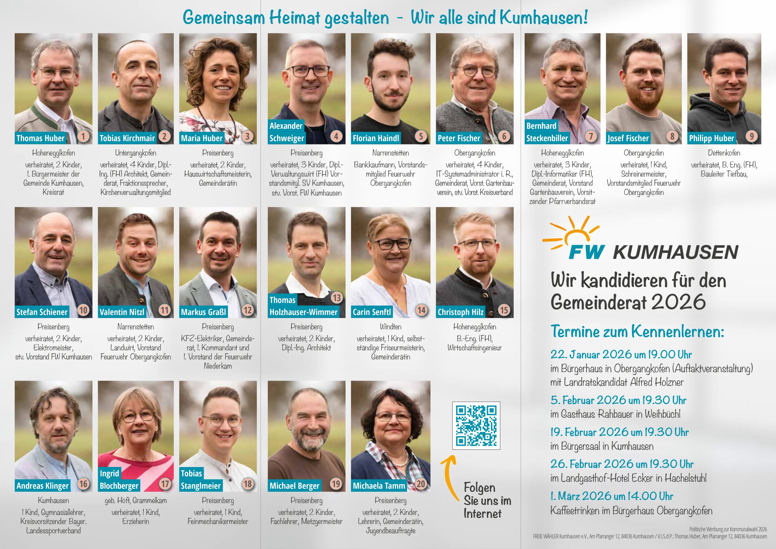der gesamte Gemeinderat, der sich gemeinsam und sachlich für Kumhausen, unsere Heimat, eingesetzt hat.“